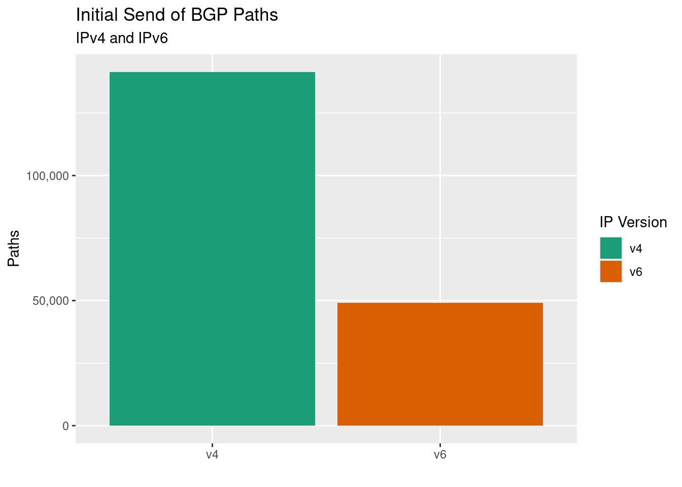 Here’s a breakdown of the number of distinct paths received in that first tranche, separated by IP version:
