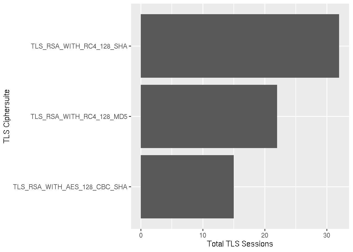 labs(x = 'TLS Ciphersuite', y = 'Total TLS Sessions')